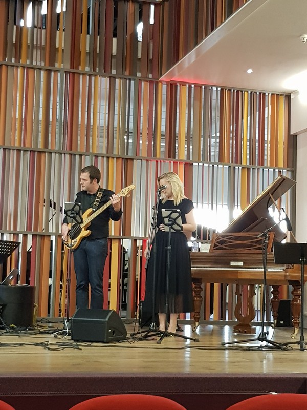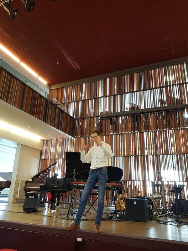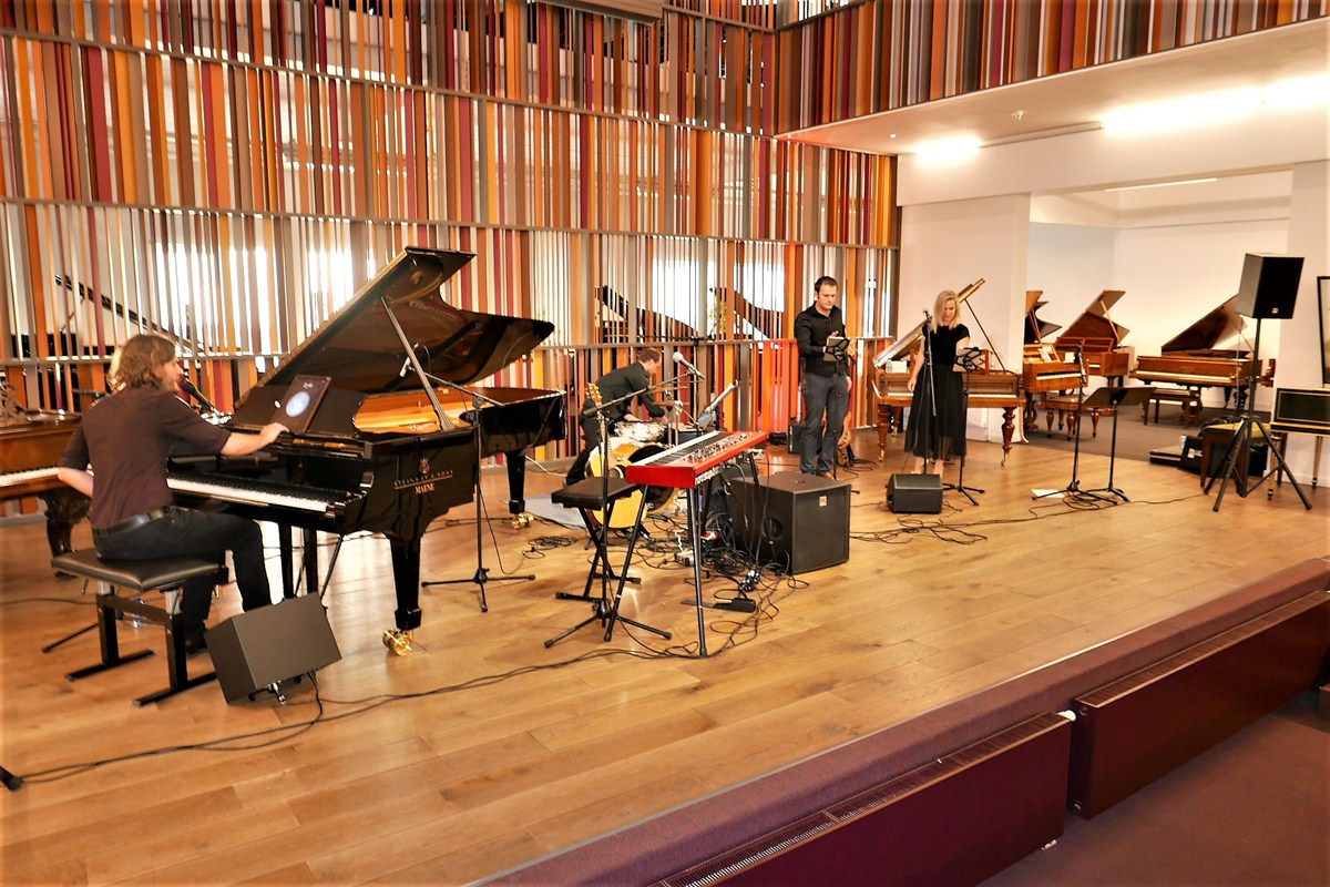 Na het bezoek van meer dan anderhalf uur werden we in de mooie concertzaal van de manufactuur vergast op een concert van zanger en pianist Simon De Cuyper en band, waarna een fijne receptie volgde.