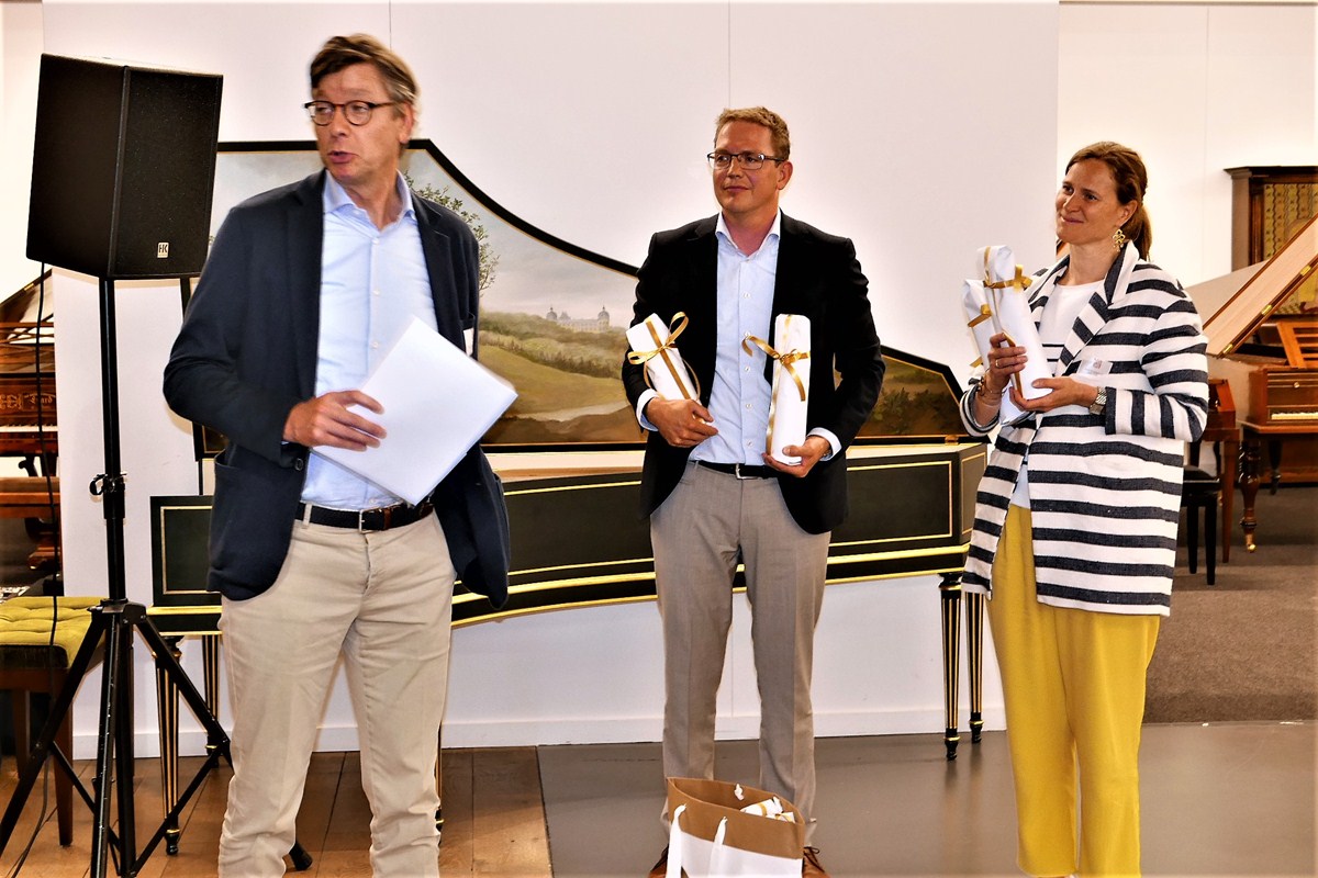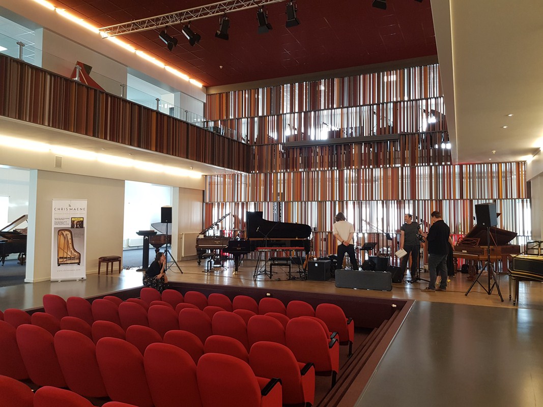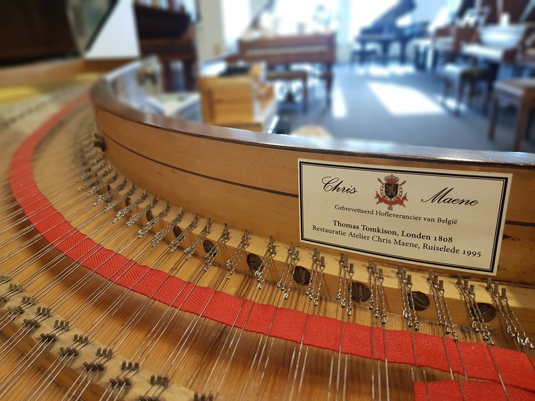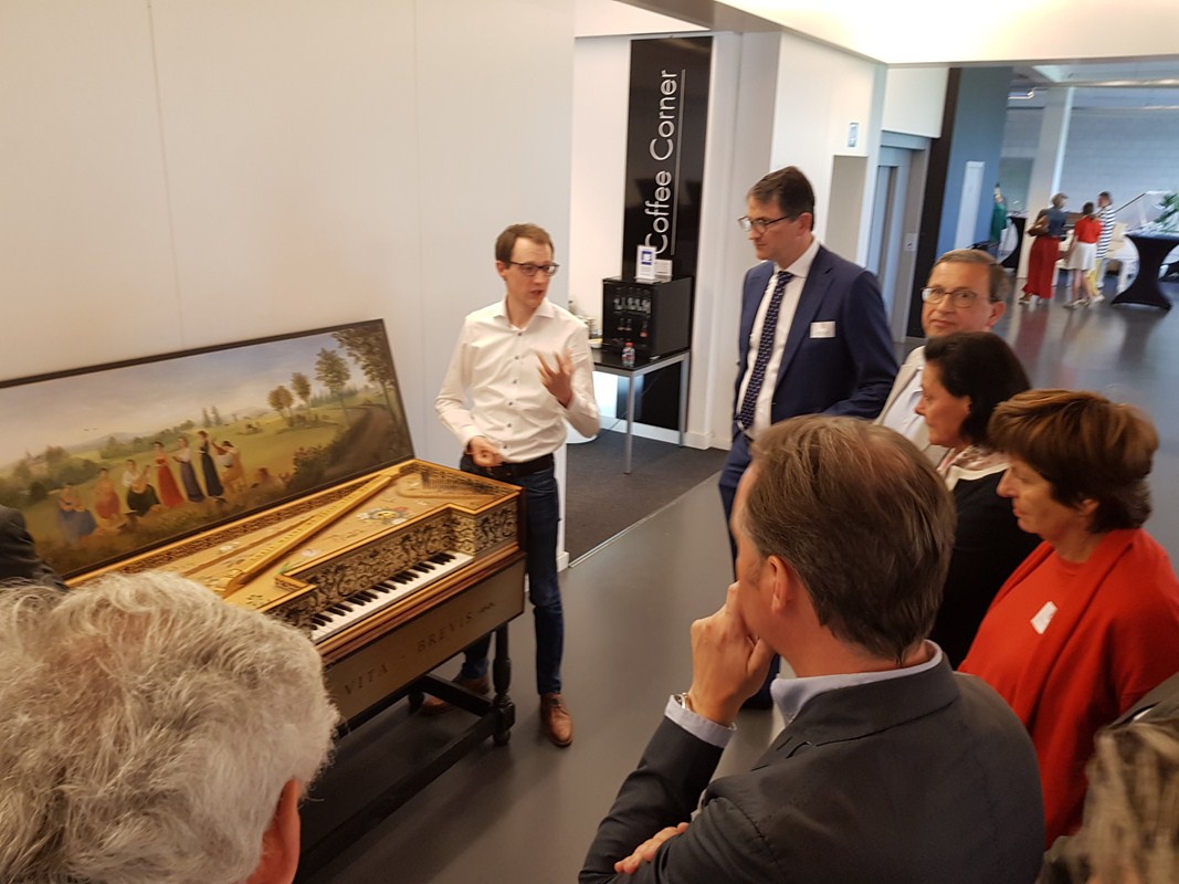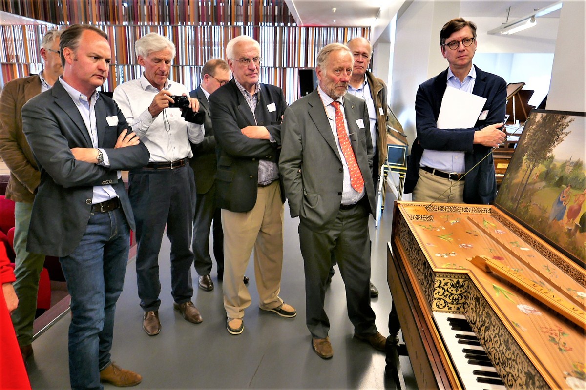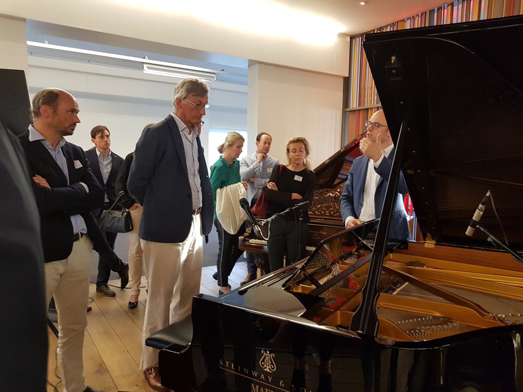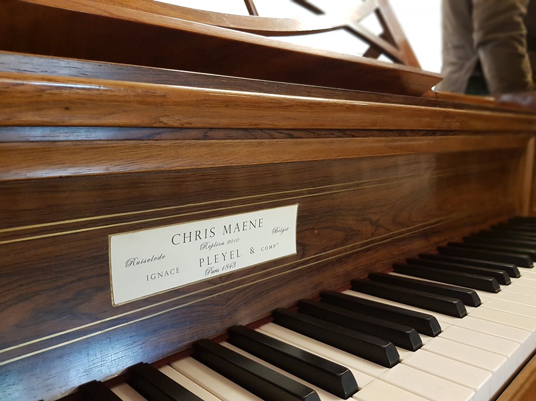 Nadien begon het bezoek waar we eigenlijk voor gekomen waren: in twee groepen werden we geleid door directieleden van Maene doorheen alle afdelingen van toonzaal en atelier. Beide gidsen waren daarenboven bevlogen pianisten die hun kunsten ten toon stelden bij de verschillende soorten piano’s gaande van replica’s van het virginaal en spinet uit de Renaissance, de clavecimbels uit de Barok periode, Mozartiaanse piano forte’s en uiteindelijk vleugelpiano’s van het merk Maene, Doutreligne (naar de naam van de moeder van Chris Maene die Doutreloigne heette) tot de wereldberoemde Steinway & Sons waarvoor ze sinds 2002 de exclusieve verkoop hebben in België en een deel van Nederland.
