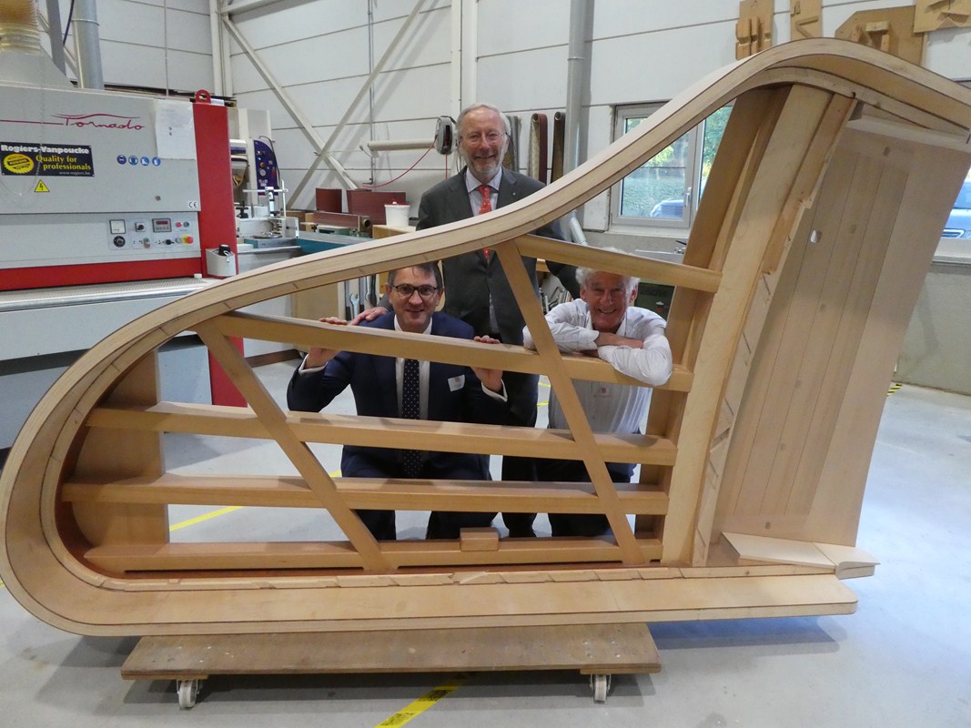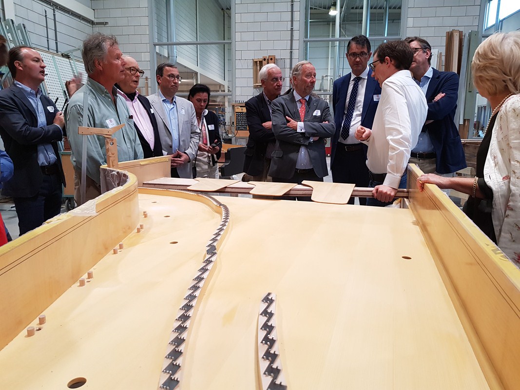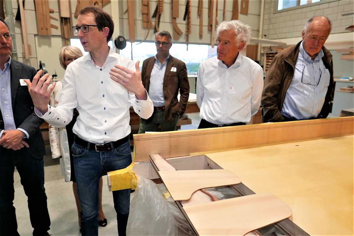Zo ook kregen we een wereldprimeur te zien in de ateliers: de bouw van een piano met gebogen klavier.